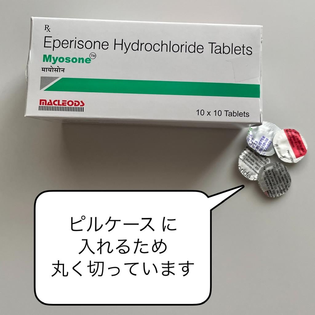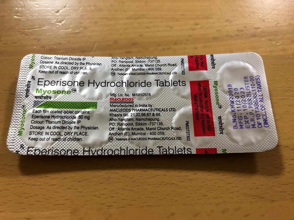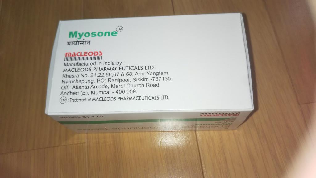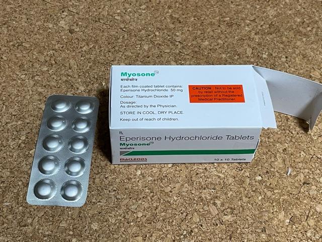 強烈な肩凝りの際にボルタロールフォルテ2.32%を塗るとともにこちらのミオナールジェネリック(Myosone)を服用しております。