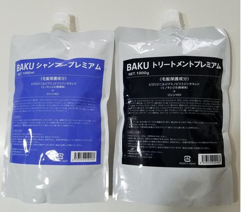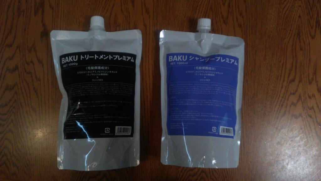 [BAKU]BAKUシャンプープレミアム + BAKUトリートメントプレミアム(大容量詰め替えパック)は、ボトル入りと比べ非常に経済的です。髪の毛にもとてもやさしい本商品を今後とも使って行きたいと思います。