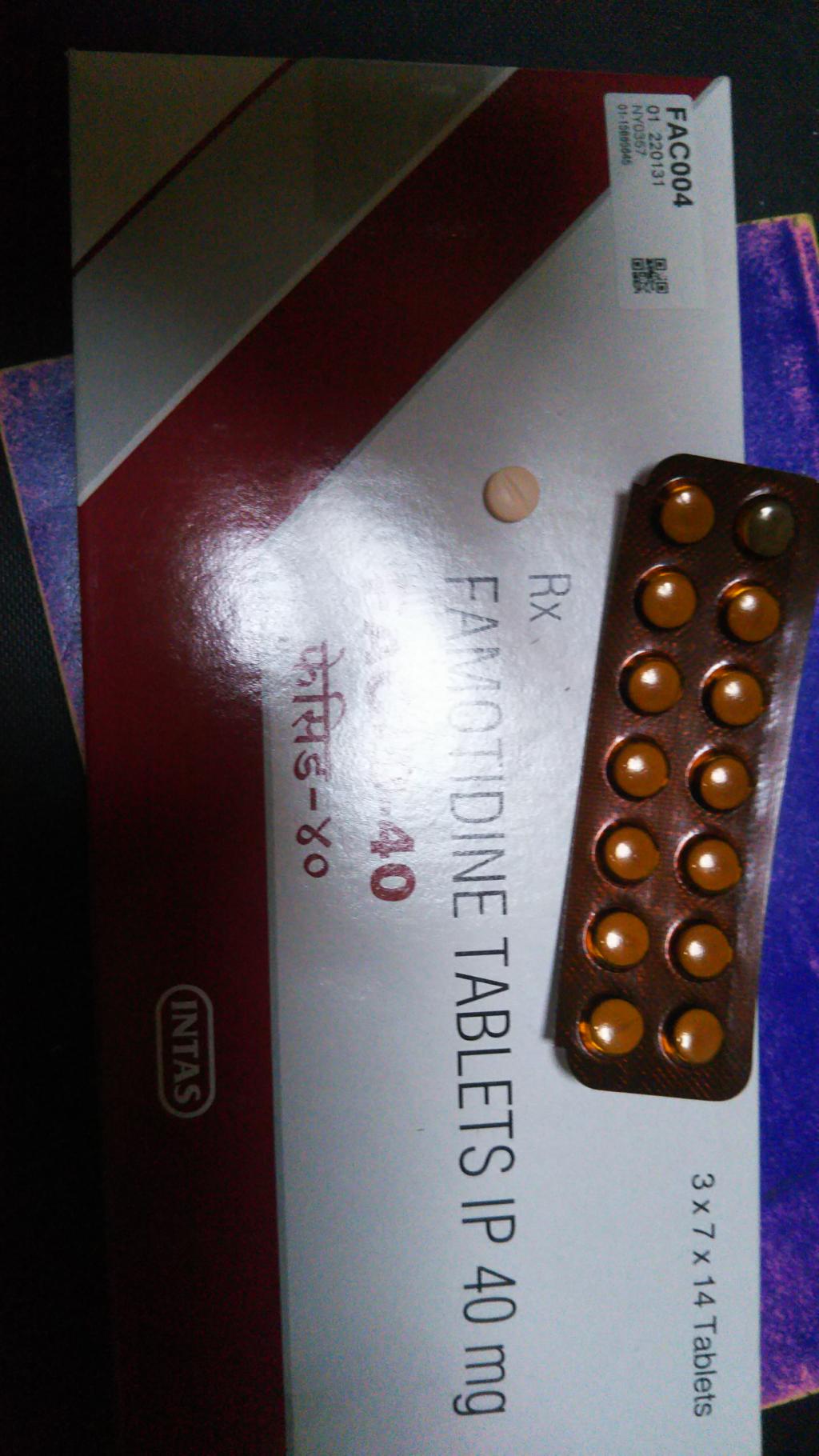 今まで病院で処方されていた物と同じ効能のファモチジン40mgを今回購入してみました。