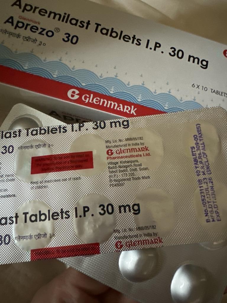 今回3度目の購入。病院で処方されるオテズラは高過ぎてコチラでお世話になってます。飲まないと症状が悪化するので安価で買えて大変助かります。乾癬患者にはとても頼もしいですね。