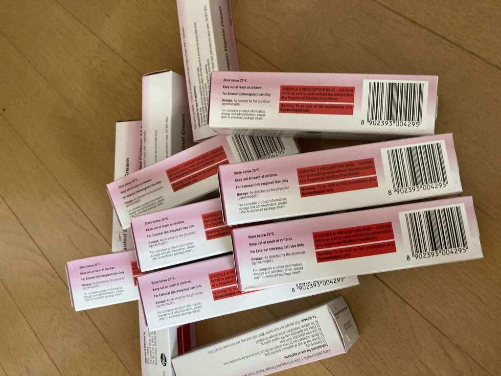 病院でホルモン治療受けているので、少量のみを顔と膣に入れています。アプリケーターではなく綿棒に付けて入れています。