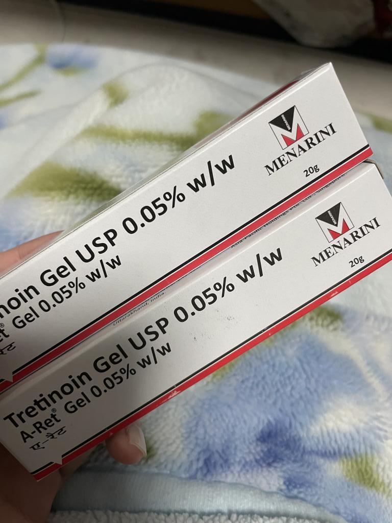 元々同じ商品の0.1%を使っていて、間違えて0.05%を注文してしまいました。0.1%は黄色い透明のジェルですが、0.05%は薄黄色の不透明なサラッとした伸ばしやすいジェルです。0.1%は効果はあるものの、皮向けや赤みが出るなどの反応も激しいのですが、0.05%は穏やかに効き、0.1%で慣れているせいもあるかと思いますが、赤みは全く出ず、派手な皮向けもありません。
