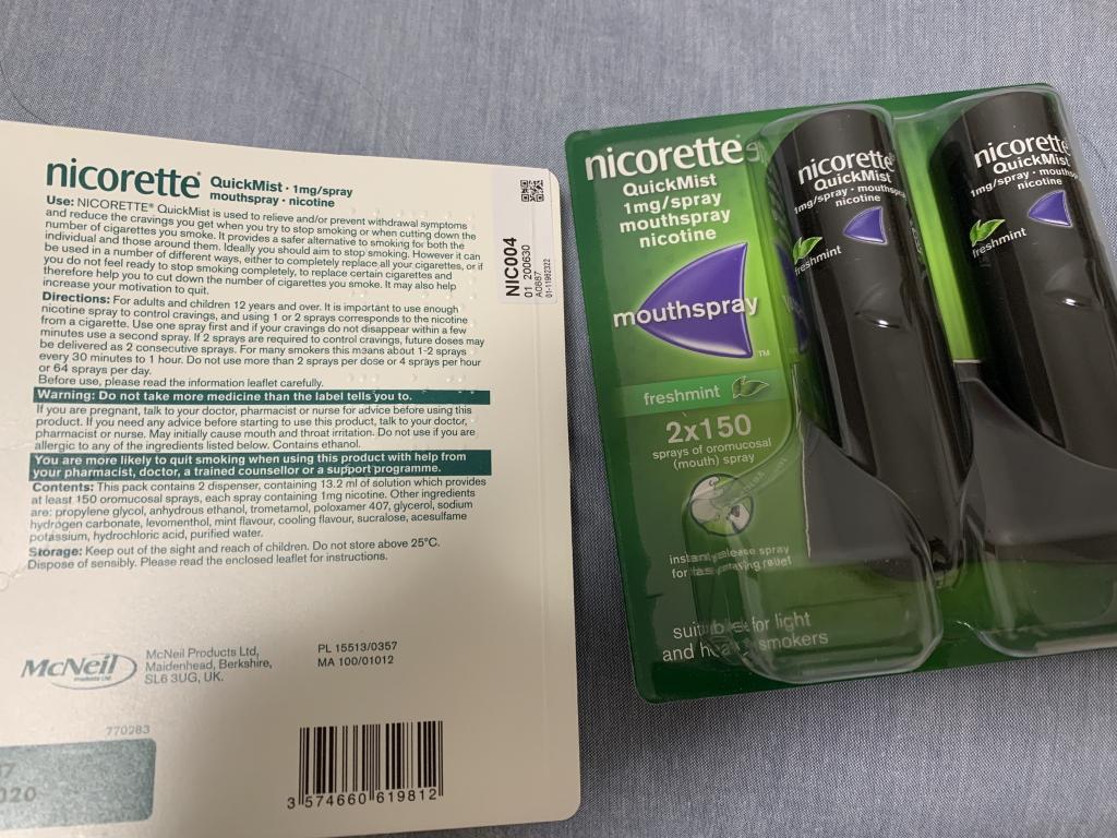 ニコレット点鼻スプレーに乗り換えを試して見ましたが、あちらは鼻の奥の刺激が強く、使用時の満足感が違少ないのでやめました。またここからやり直します。
