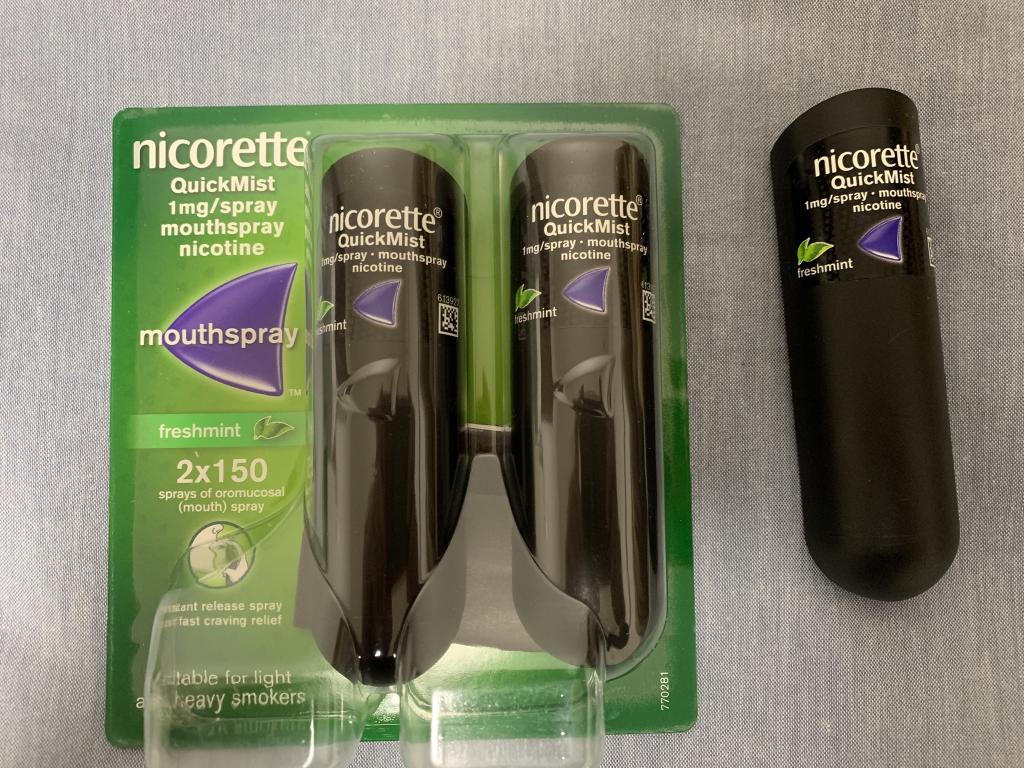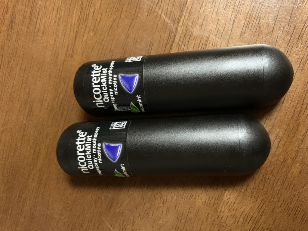 2年以上使っています。以前は喫煙者でしたが、今は吸っていません。タバコはやめたけど、クイックミストがやめられない。タバコに近い感覚で使用できます。いつも貰いタバコで禁煙を断念していたのですが、これを持っていれば大丈夫になりました。1日に50~60噴霧ぐらい使用しています。口の中は特に異常はありません。ニコレットのガムやマイクロタブ、点鼻、トローチ、パッチのすべてを使用しましたが、クイックミストが最も良いです。でも初めて使ったときは刺激が強すぎて涙がでました。最初は舌下ではなく、頬の内側あたりのがよいと思います。