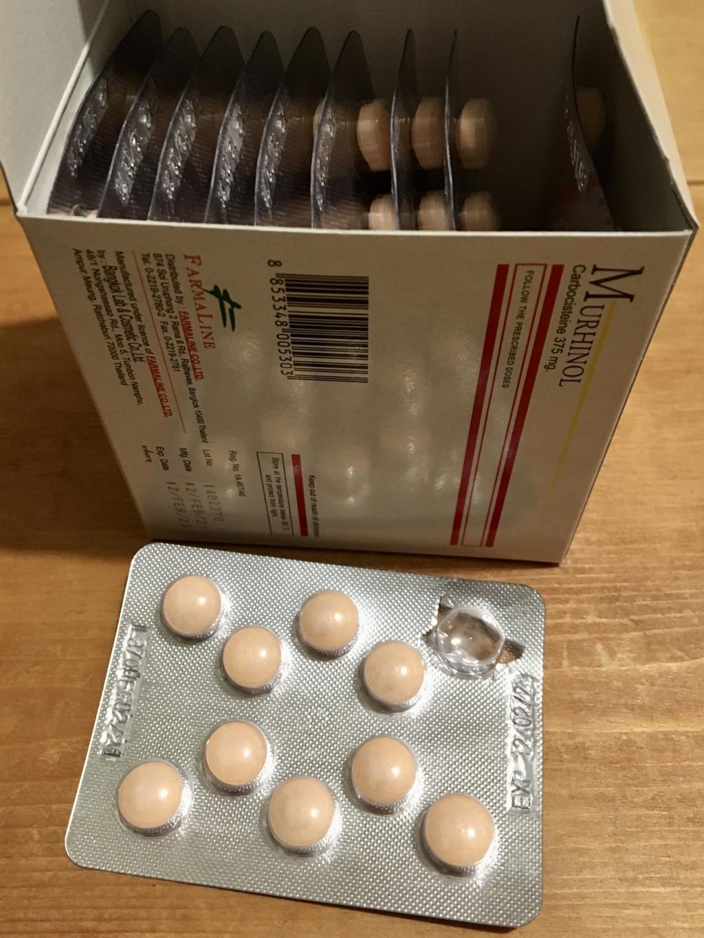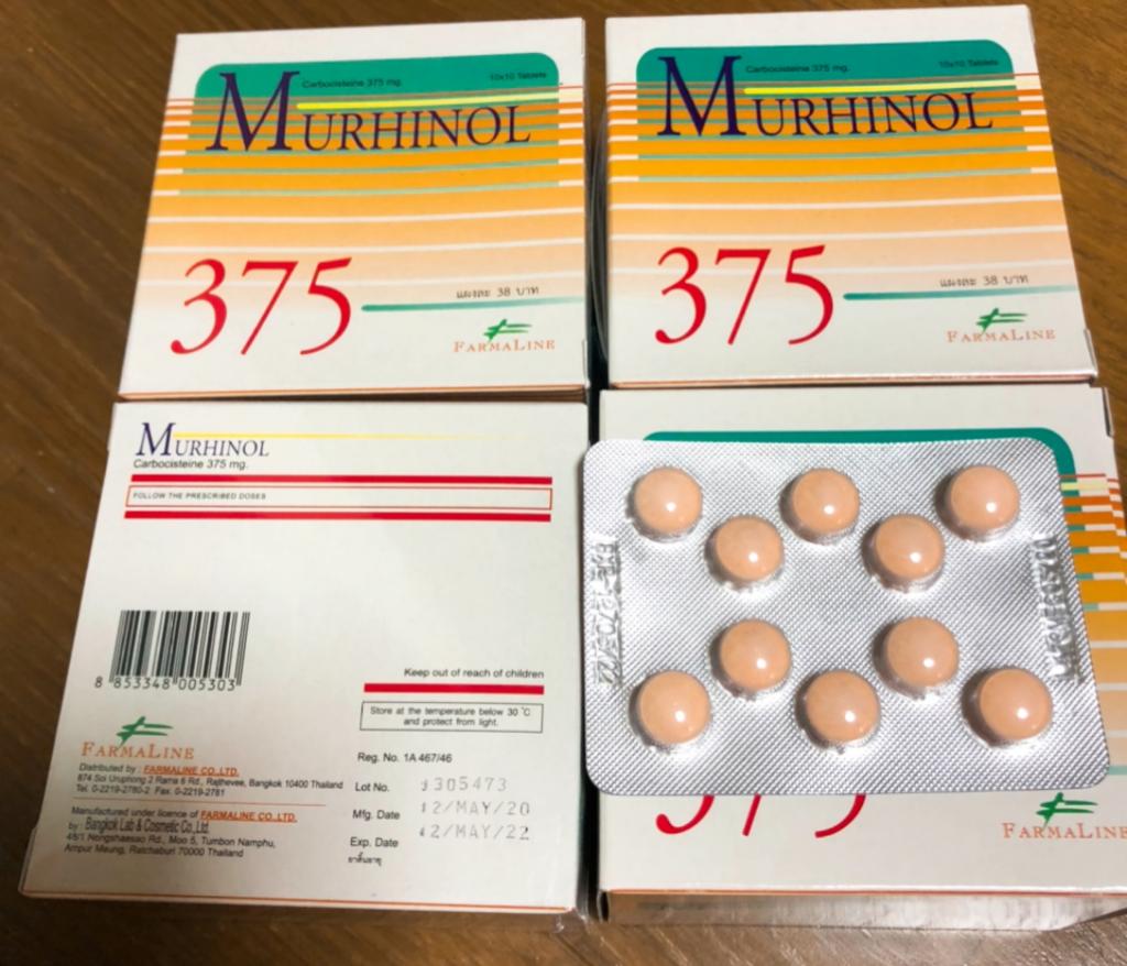 375mgという量のせいか、いつも病院で処方されるカルボシステイン(500mg)よりも効果が弱めかもしれないです。
