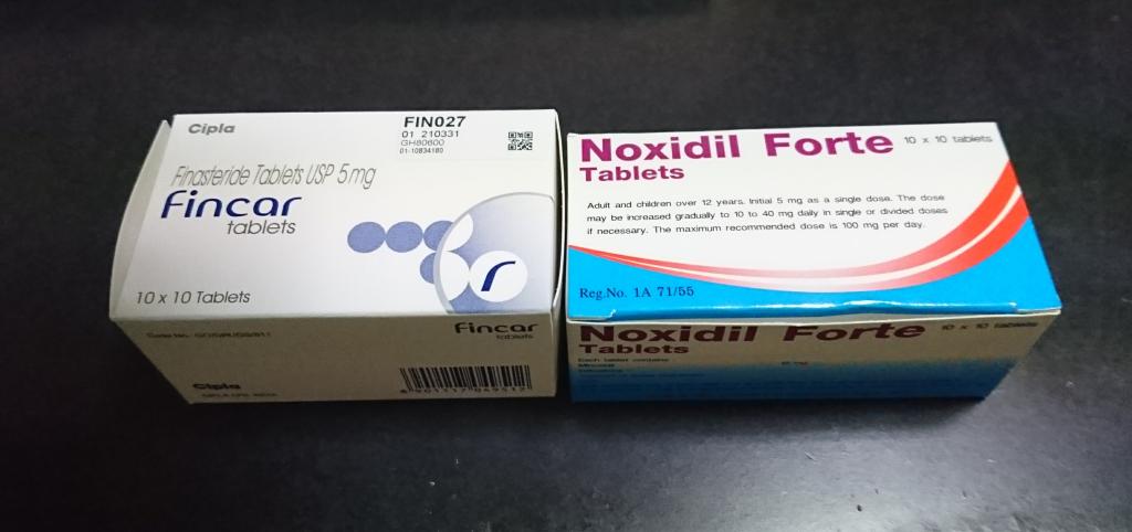 フィンカー(Fincar)5mg100錠 + ミノキシジルタブレット(Noxidil) 10mg100錠を長く使用しています。