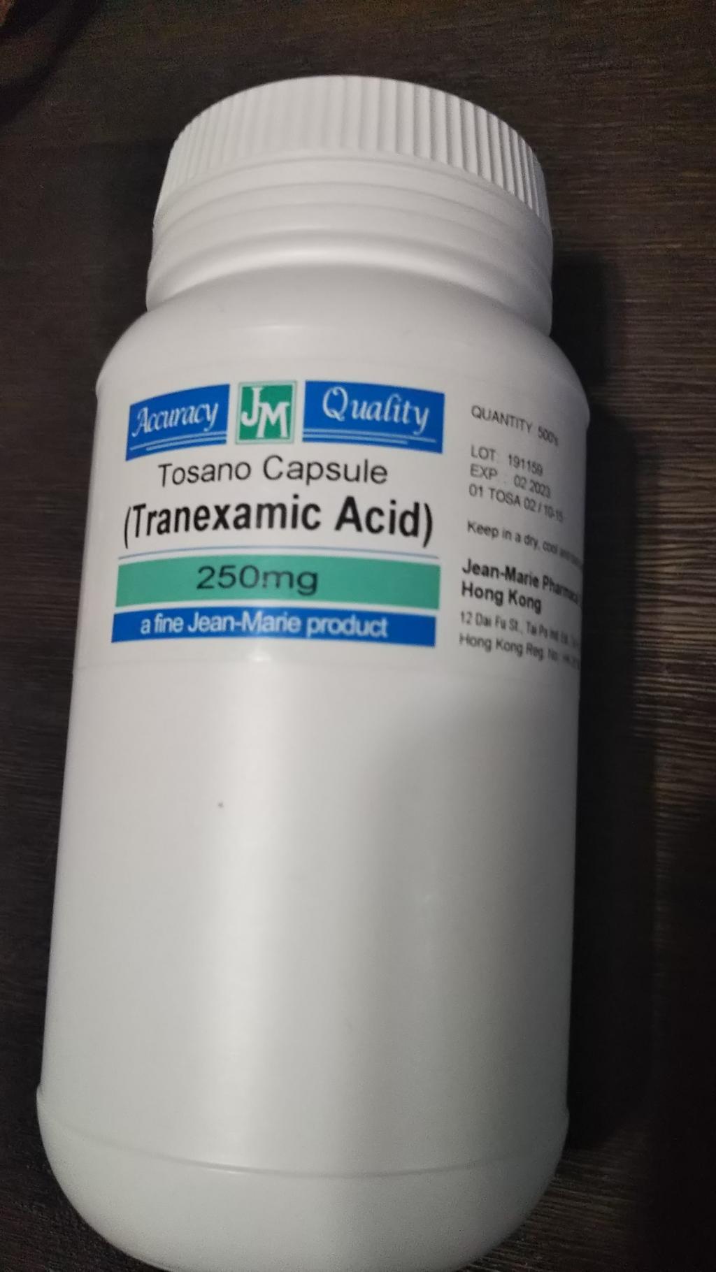 肌荒れ後のシミ予防と肝斑治療の為にに購入!皮膚科で処方してもらうよりもコスパが良いので、これからもお世話になります。ただひとつ気になったのは、もし税関で荷物開封された場合、この500錠入りのボトルはそのまま税関をパス出来るのでしょうか?