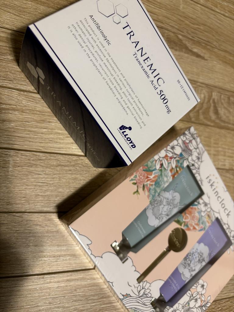 年々、肝斑が気になり、一時期はクリニックで購入していました。ただ値段もあり、通院もあるので長く続かず、辞めてました。今回こちらで見つけて、期待を込めて購入しました。プレゼント企画のハンドクリームもよかったです。