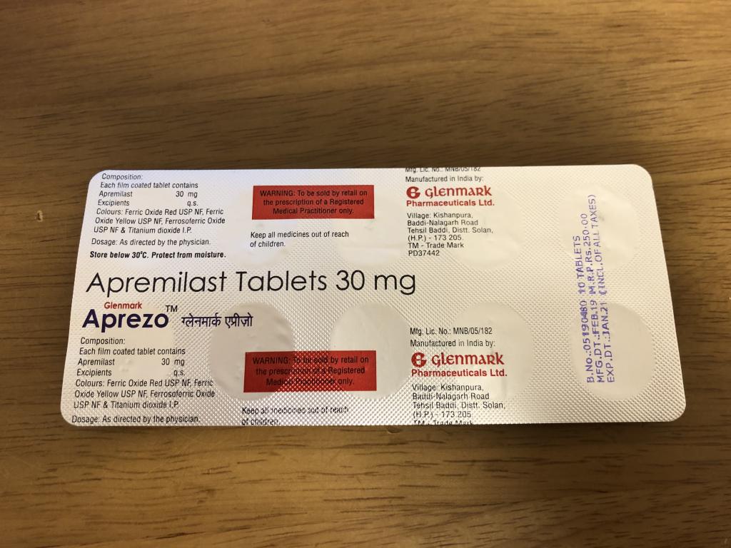 尋常性乾癬でオテズラを服用していますが、とても高い。とりあえず、半分くらいをアプレゾで試してみようと思います。
