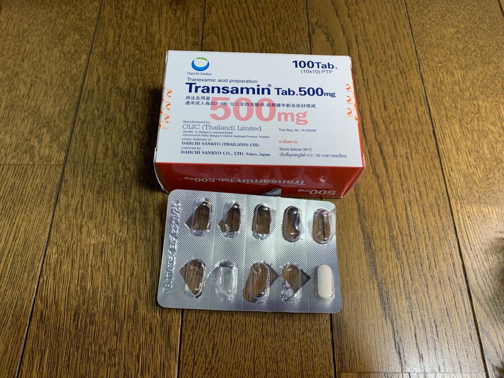 今までオンライン処方で国内医療から定期便でビタミン剤やトランサミンを飲んでいました。(全て自己負担)トランサミンが1番高くこちらと比べたら安かったのでいったんサプリメントの定期を休んでみました。