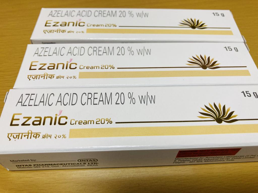 酒さの治療に先日から使い始めました。汗をかくとピリピリとしみて、皮剥け、ニキビのようなブツブツが小さいですが顔全体にある状態です。アゼライン酸は美白効果もあるみたいですし、長く使ってみようと今回3本購入してみました。ブツブツが消えてくれることを期待しています。