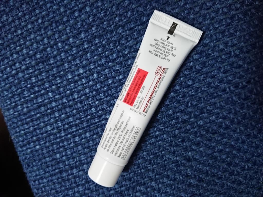 ややざらつきのある伸びの悪い白い軟膏のようなクリームですが、べたつきはなく塗ると透明なります。
