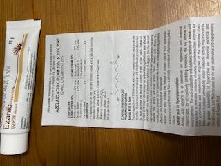酒さで膿んだ白い小さなプツプツがなかなか治らずイベルメクチンを塗っていましたが、治っても違う場所に出てくるを繰り返していてよくなっている感じがなくアゼライン酸に変えました。