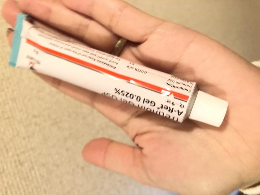 ディフェリンゲルとべピオを普段使っています。トレチノインは初めての塗布だったので、いちばん低い濃度から買ってみましたがヒリヒリも、皮むけも一切起こりませんでした。今度0.1%を頼んでみましたので比較してみます。