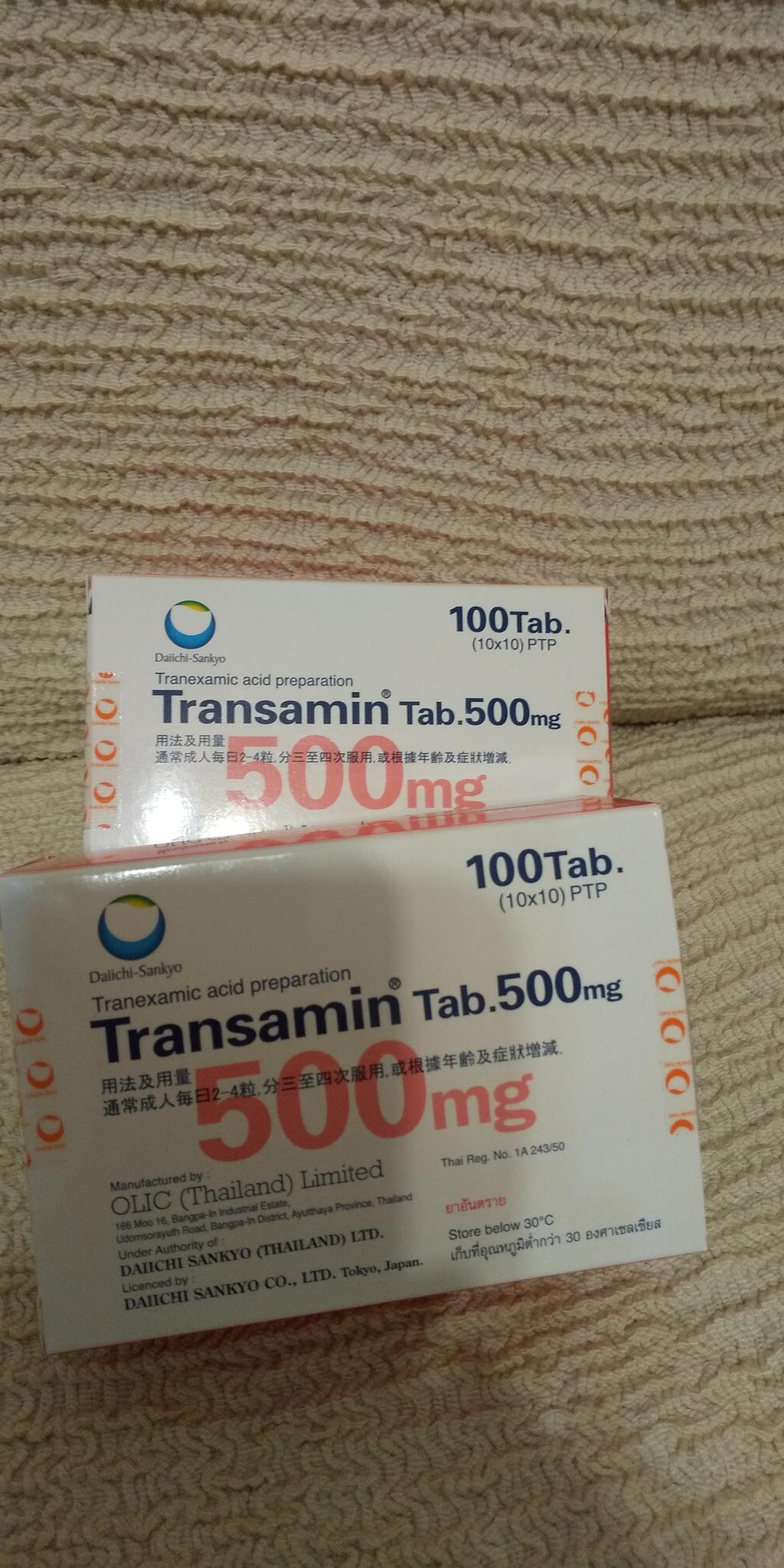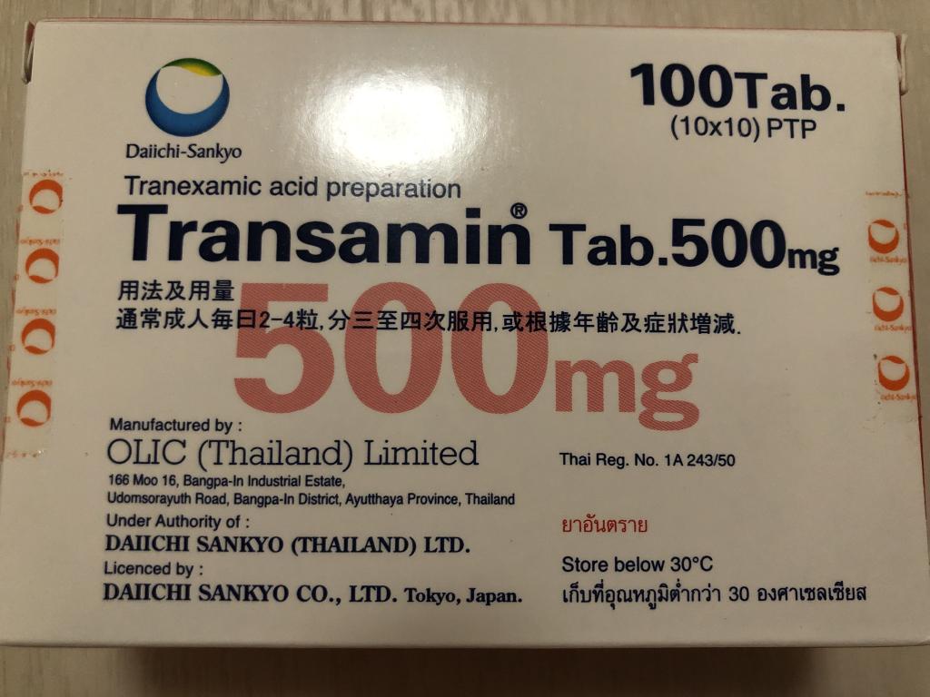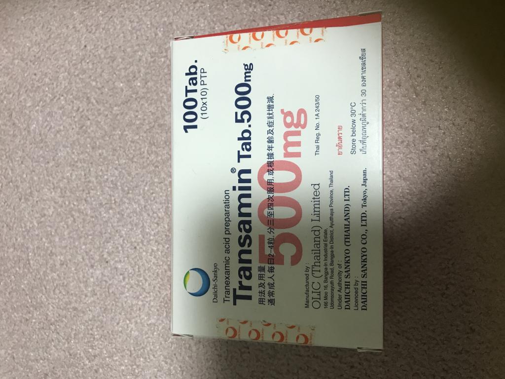 肝斑が気になり、以前は美容皮膚科で処方してもらってましたが、こちらのほうが安いので500mgを購入して定期的に服用してます。日本の信頼おける大手製薬メーカーなので私はこちらの商品をいつも購入してます。値段もお手頃でいいですが、トランサミンは服用のルールが用途によって決まってるので自分で服用する際はその知識を頭に入れてから購入するのがいいかと思います。