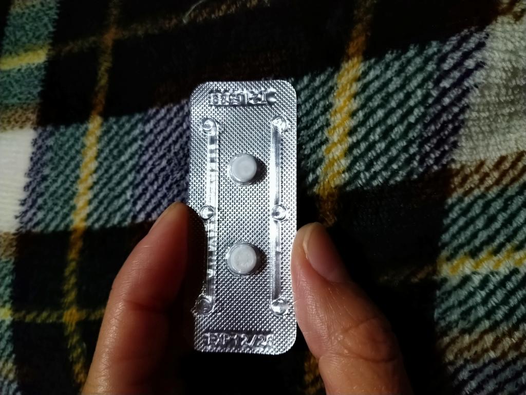 レビュー見てると先に1錠のみ、後からもう1錠飲むと書いてありますが、2錠まとめてが正しいです。
