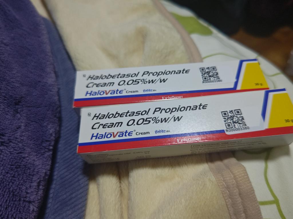 ハロベート軟膏の方がさらに効きが良い気もしますがベタベタしてのびが悪く、後頭部の頭皮に使いづらいのでクリームの方が使用感が良いです。