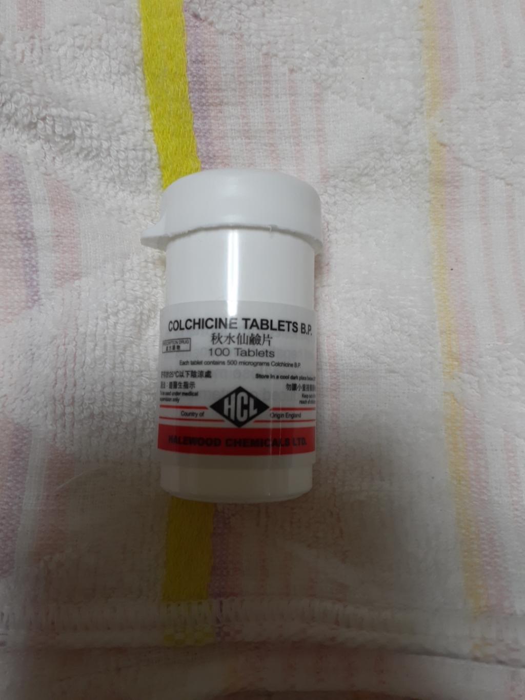 始め50錠買ったのですがコルヒチンカバーとして飲んでいると足りないので100錠買い足しました。