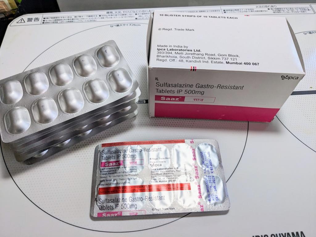 瘍性大腸炎を発症してから2年経ちますが、月に1回通院して処方してもらうのも煩わしく思い、現在オオサカ堂さんでアサコール800mgとSaaz500mgをリピート注文して凌いでいます。瘍性大腸炎は体調により波があり、症状に応じて服用する薬量を自分なりに調整しています。最近は円安のお蔭で購入価格が高くなっているので、アサコール800mgより割安なSaaz500mgを多めに服用するようになりました。効き目は十分に実感できます。