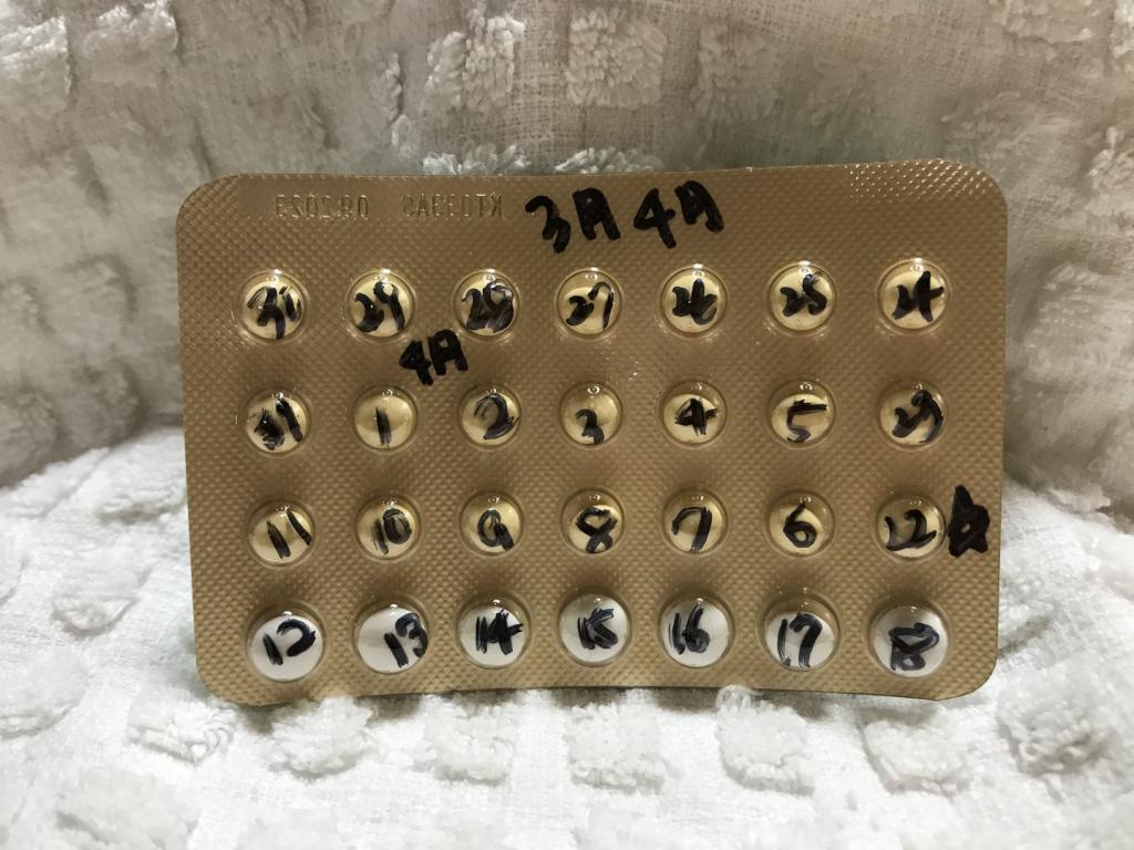 裏面の飲む周期表が意味不明なので、自分で日付けを書き込んで飲んでいます。特に問題なくピルとして作用しているみたいなので、このまま続けていきたいと思います。
