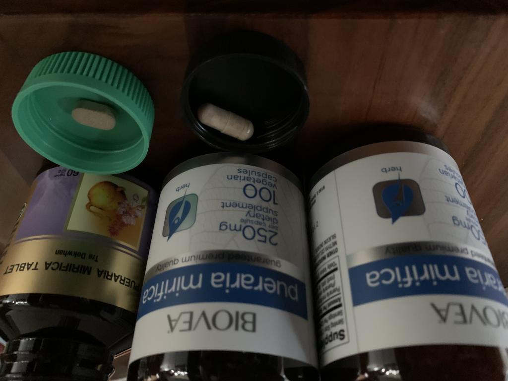 プエラリアは女性ホルモンに似た働きをする、とよく言われることがありますが、私の場合は体への負担を軽減する目的でホルモンの服用を月に一週間程度お休みすることがございまして、その間にプエラリアを使用しております。