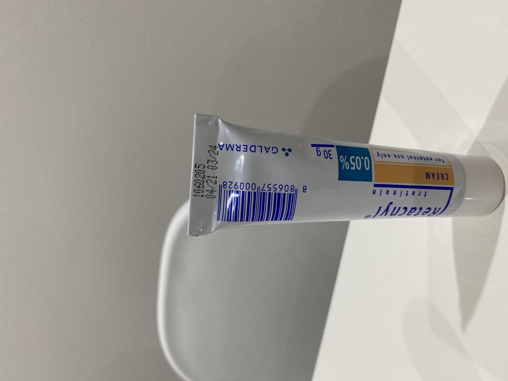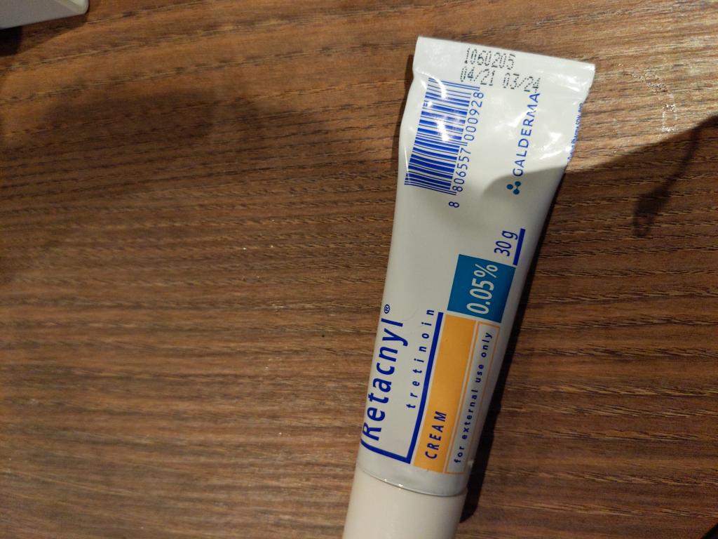 皮膚科で購入していたものが安く買えてよかったです。この濃度でもしっかり反応が出るので本当に少量ずつ使用しています。調子に乗って少しでも多くつけると時間差で2日後酷いことになるので注意です。直近まではジェルタイプのトレチノインを使っていて、ジェルは割とすぐ馴染むので大丈夫でしたが、クリームは塗る量や塗ってすぐ横になる場合耳とか他の部位に付きやすいので注意です。めちゃくちゃ痒くなりますので。