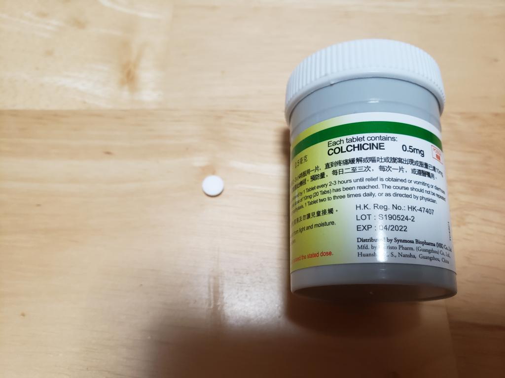 痛風発作予防のために購入しました。白血球の働き(好中球の遊走)を抑えて炎症を予防する薬です。尿酸を減らす作用はないので、フェブリクやクエン酸と併用しています。家族性地中海熱やベーチェット病にも適応があるようです。