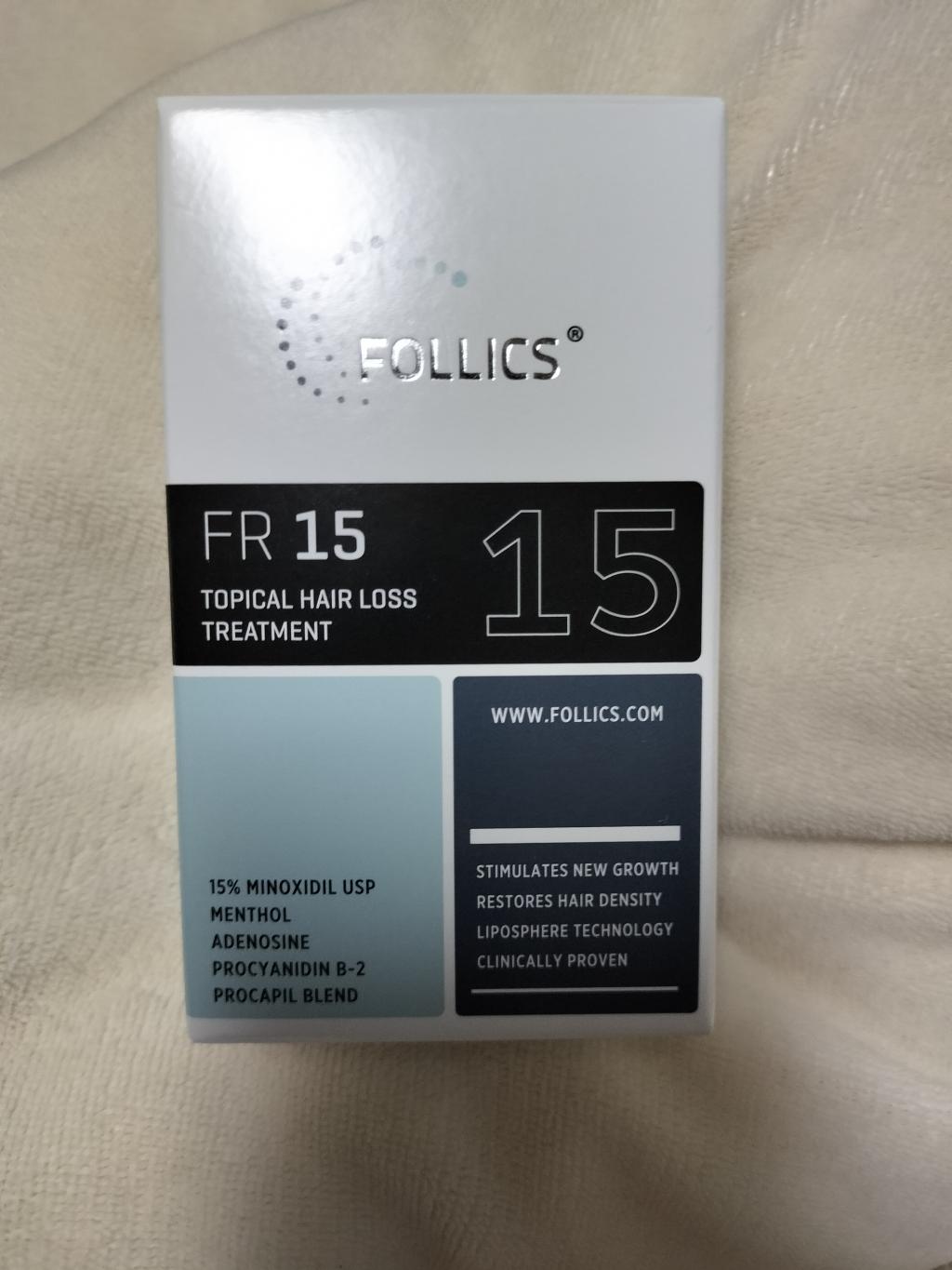 カークランとミノキシジル5%から、[FOLLICS]フォリックス FR15 ローション(ミノキシジル15%)にかえました。徐々にですが抜け毛が少なくなり、色も黒くなってきました。ただ、さぼると抜け毛が途端に増えますので、かなり効いていると思います。