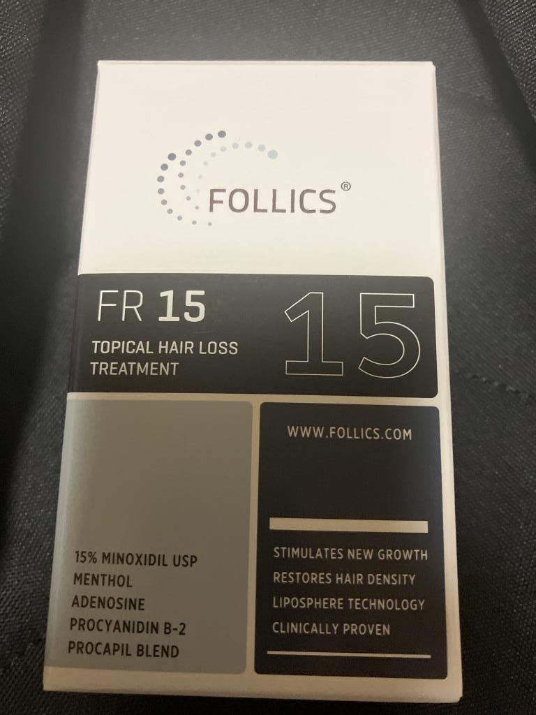 カークランとミノキシジル5%から、[FOLLICS]フォリックス FR15 ローション(ミノキシジル15%)にかえました。徐々にですが抜け毛が少なくなり、色も黒くなってきました。