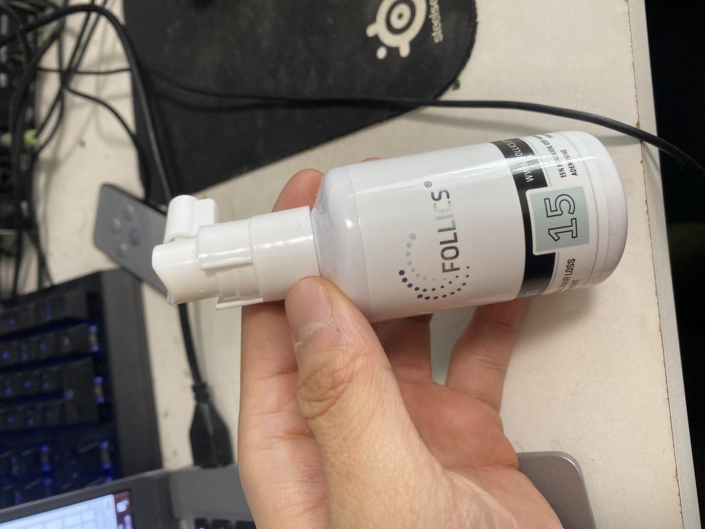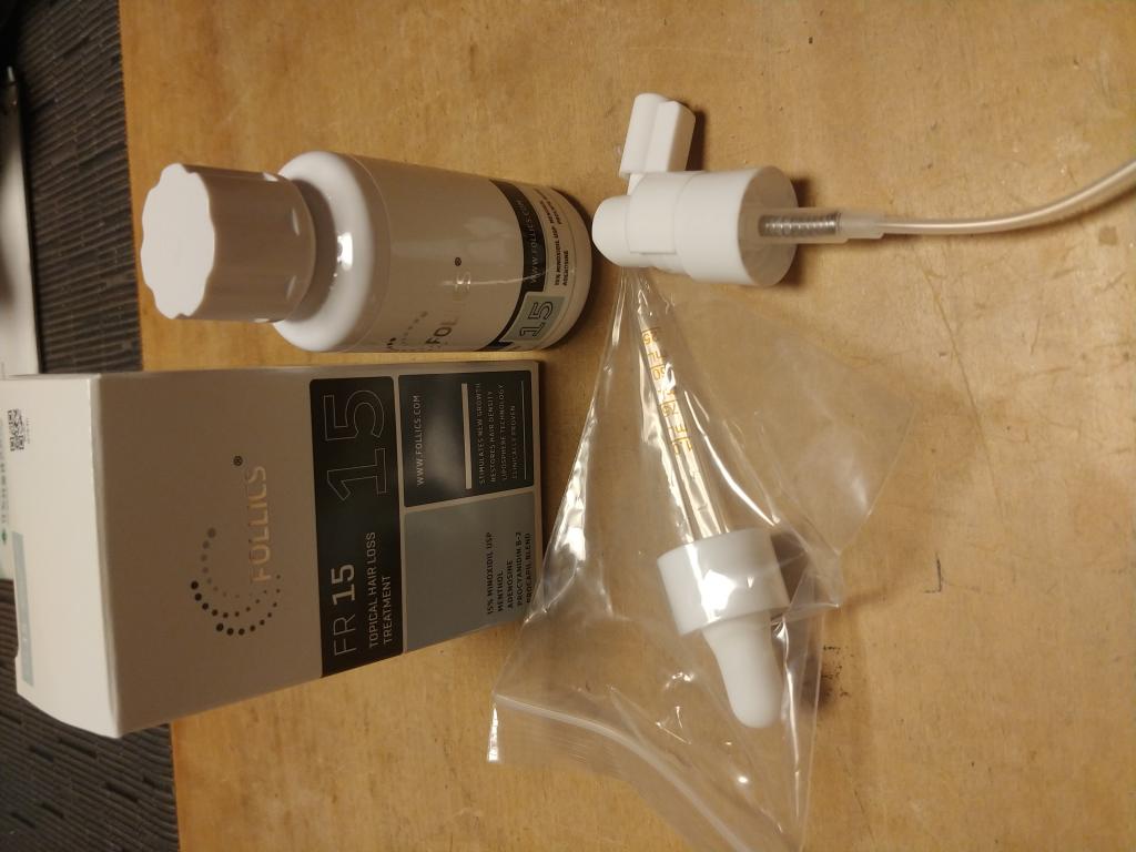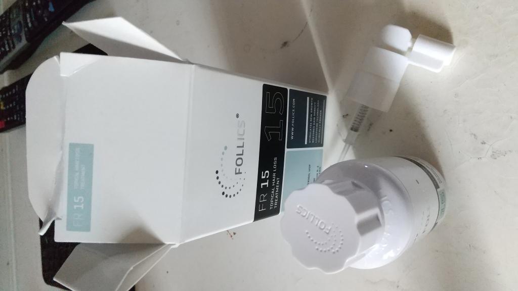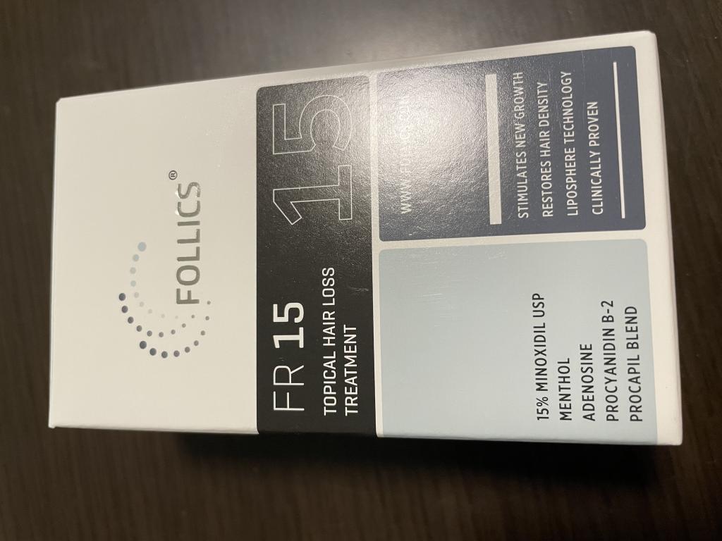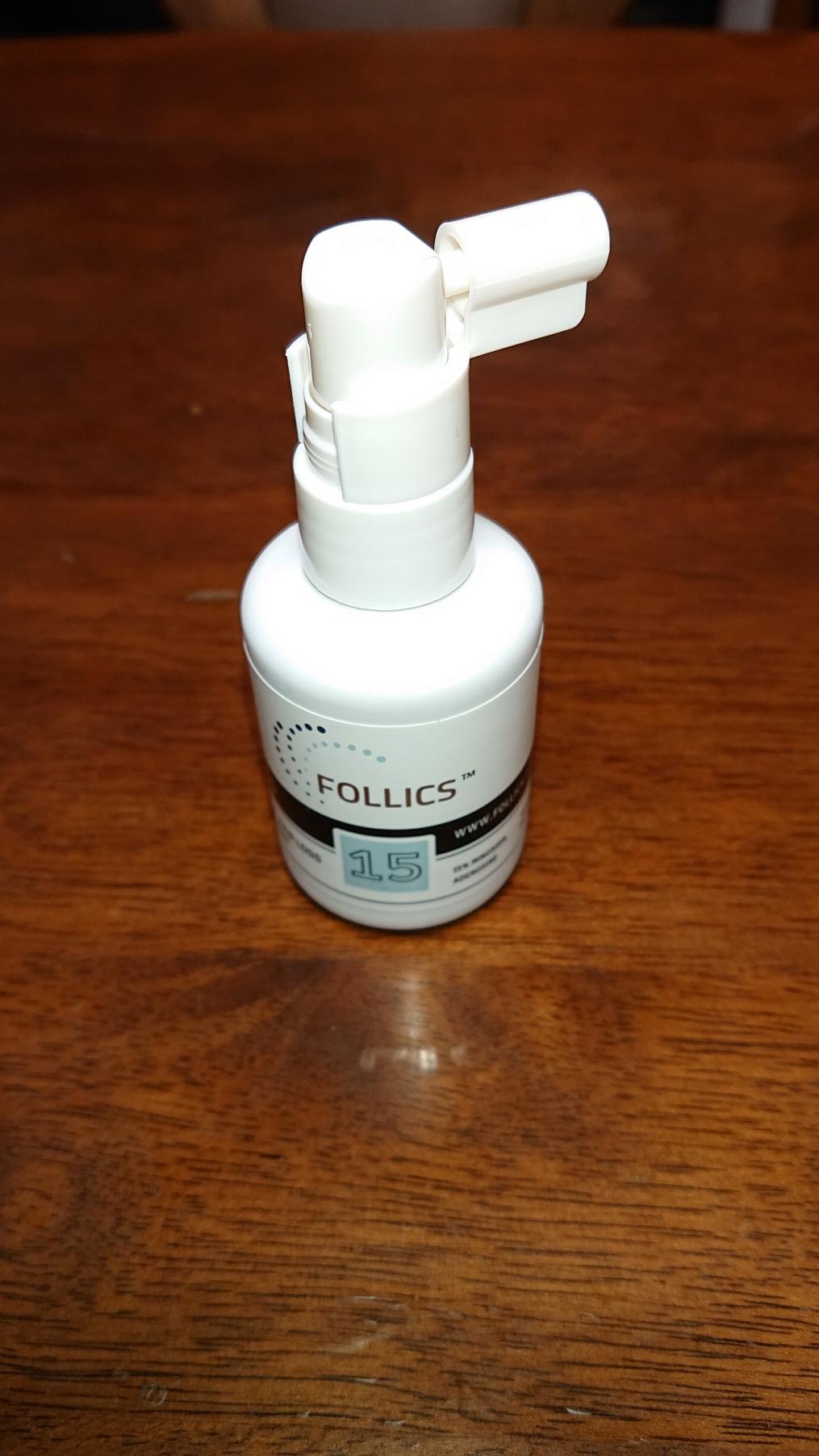 フォリックス16とは、わずか1%の濃度違いですが、こちらは、さらっとした少し黄色みがかった液状。(16は白いペースト状)使い勝手はフォリックス15の方が良いです。 効いているかどうかは、よくわからないですが、国内のリアップとの入れ替えですが、脱毛が増えることは無いので、効いているのでしょう・・・・ ただ、リアップの濃度3倍(5%<-15%)の実感はないですね・・・。 濃度が高ければよいというものではないのかもしれません。