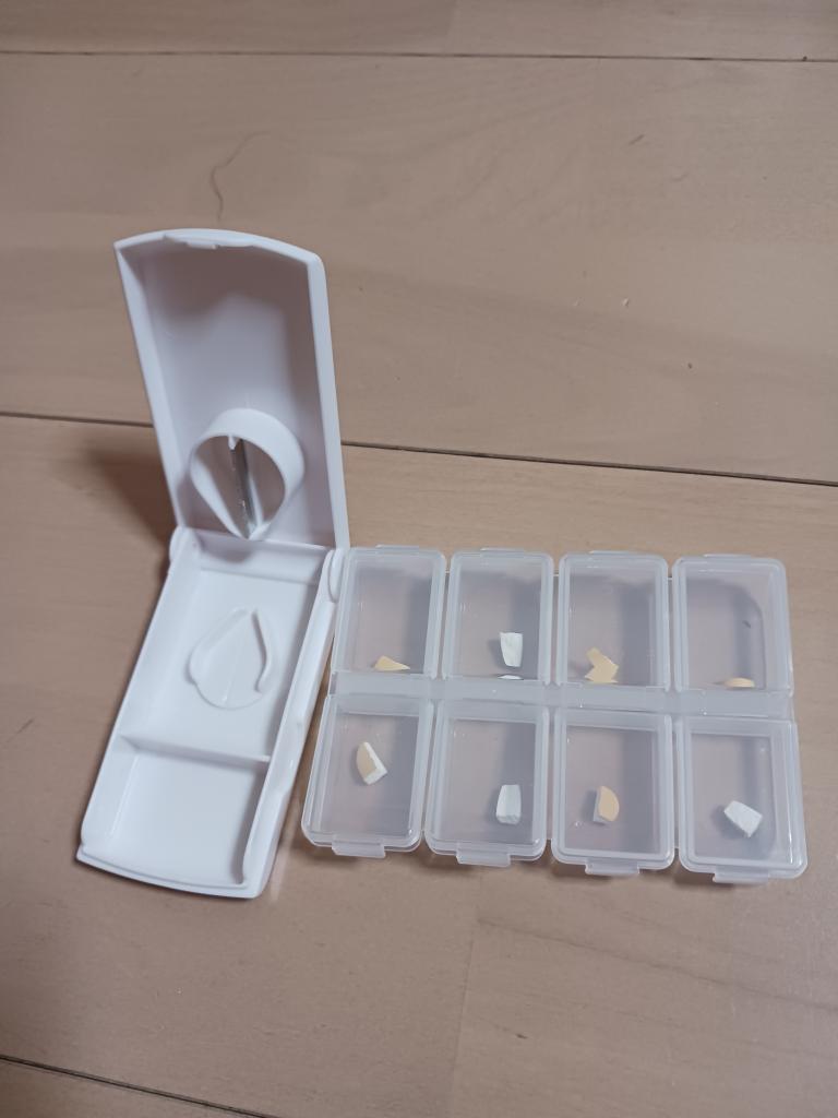 ピルカッターとピルケースは、セリアで求めました。