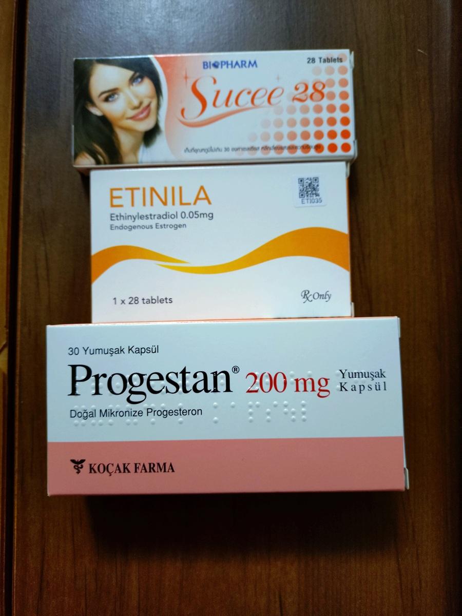 就寝前にプレマリン+エチニラ2錠+プロゲスタン1カプセル飲んで、起床後にエチニラ2錠を毎日飲んでます。