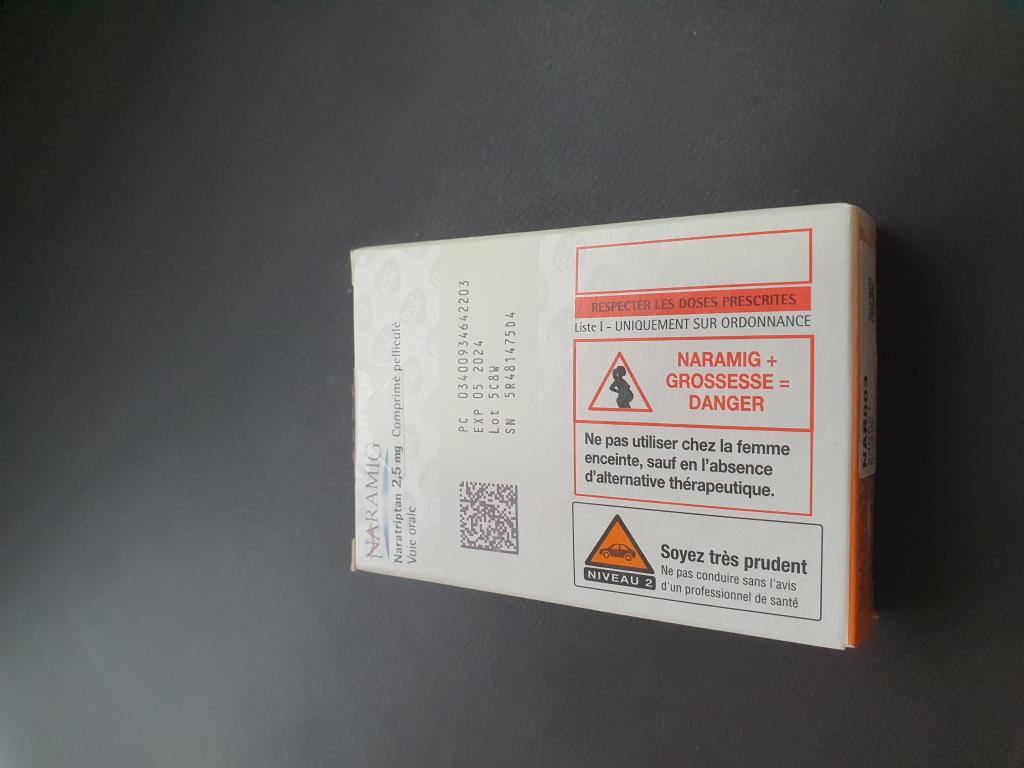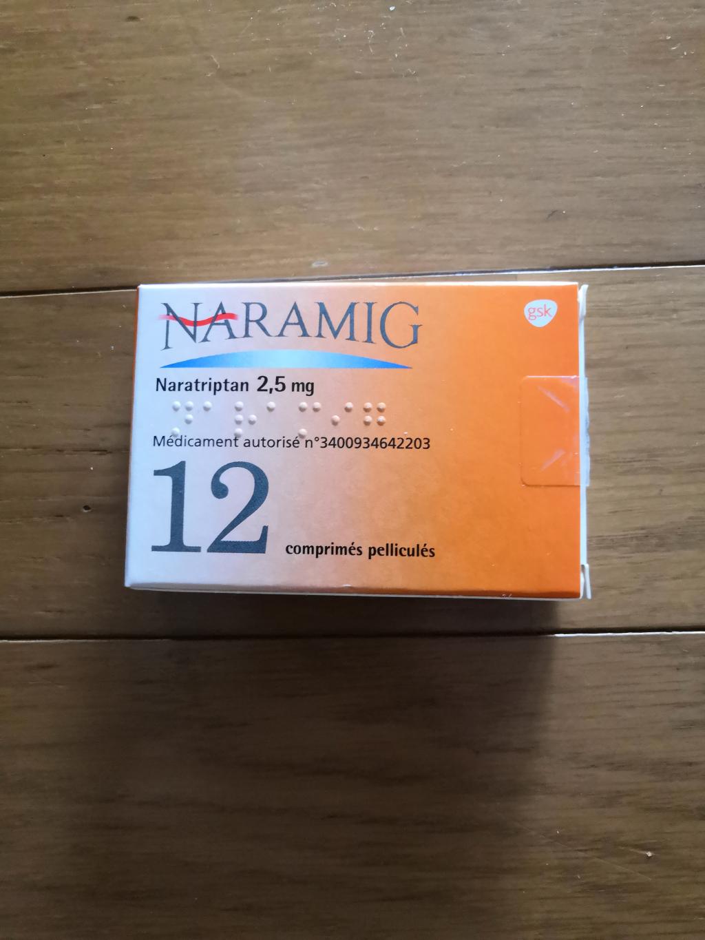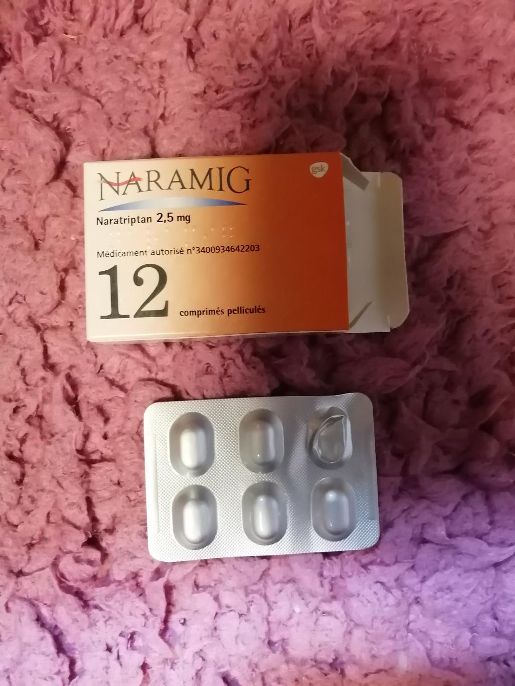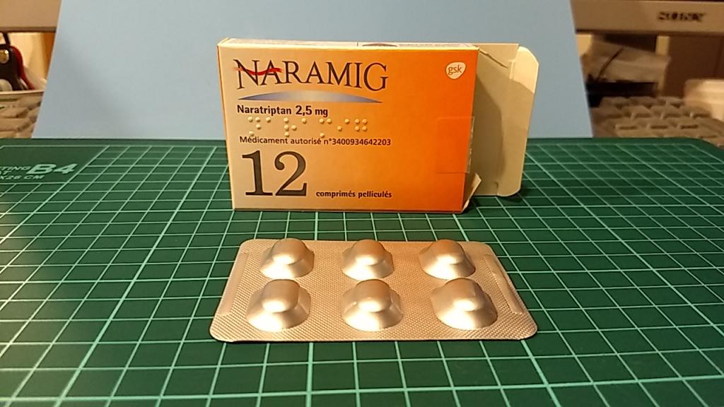 ナラトリプタン系の偏頭痛薬です。効果が現れるのに時間がかかるのと、私の場合はナラミグだと眠気と吐き気があります。ですが、痛みは確実に無くなりますし、効果の持続性があるのが良いです。私はイミグランが効かないので、こちらを使っています。