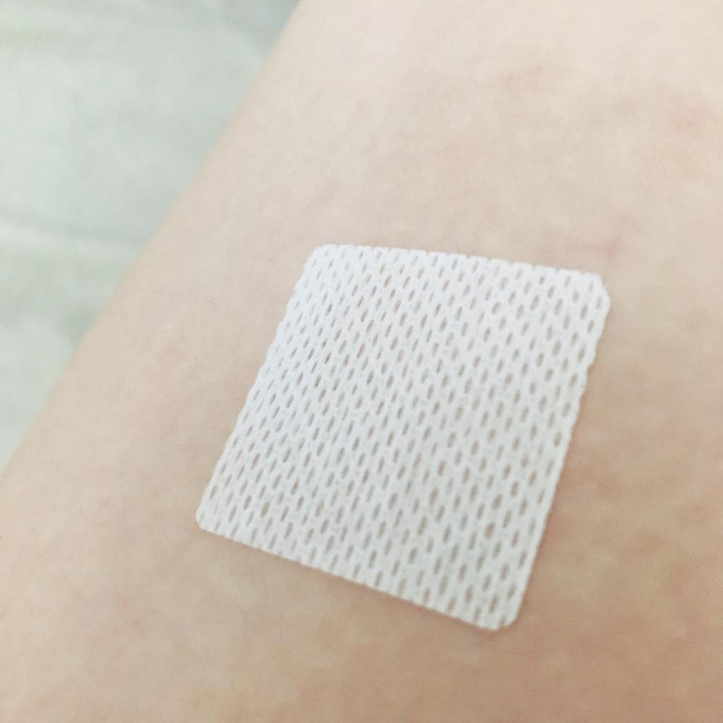 貼るだけなので手軽。そして粘着力がすごい。はがすとまだ粘着のりが皮膚に残ってます。あと少し赤くなります。