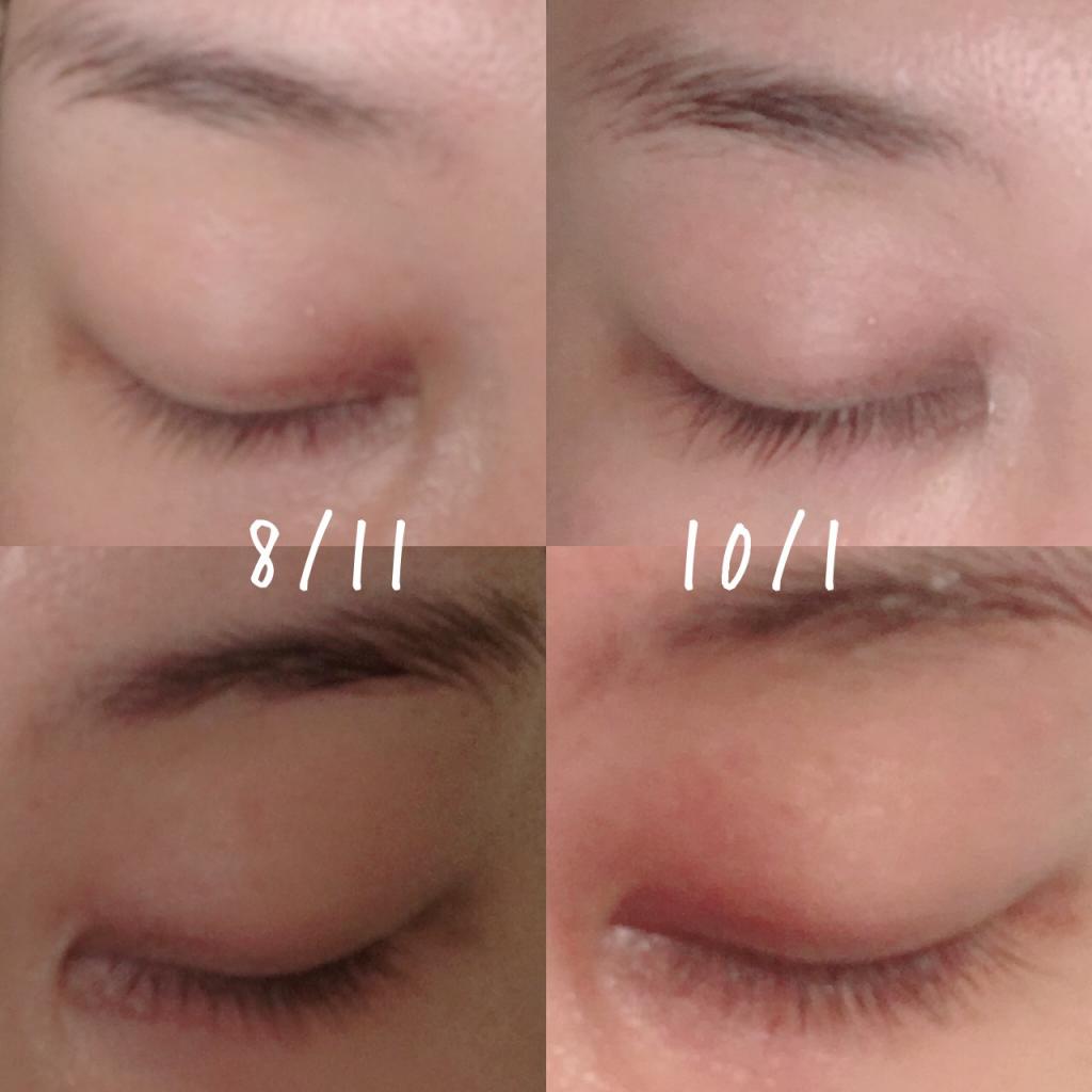 寝ている間に涙が滲むのか、涙が溜まっていたであろう部分の産毛が濃くなり(笑)、まぶたの際が当たる上まぶたの部分(二重ラインの上側)からも毛が生えて来ました(笑)!