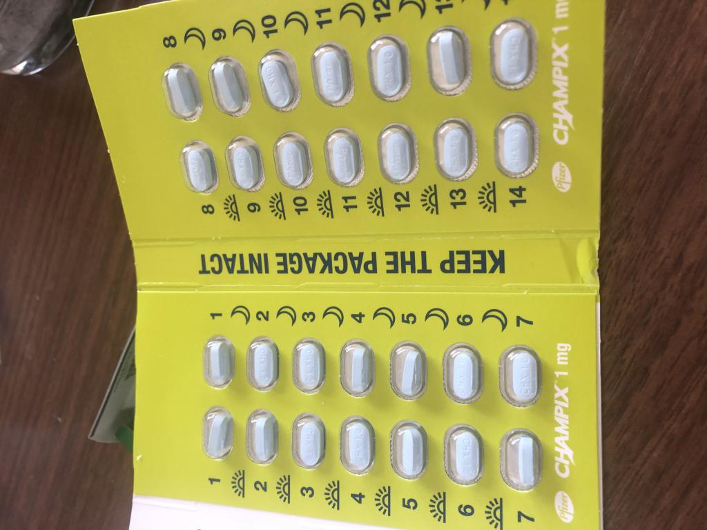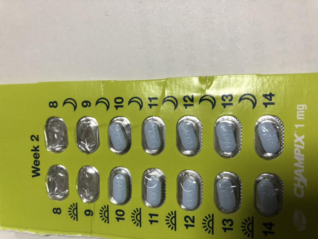 チャンピックス(Champix)1mg28錠2箱を追加し半分に割り吸いたくなった衝動の時に服用すると収まります