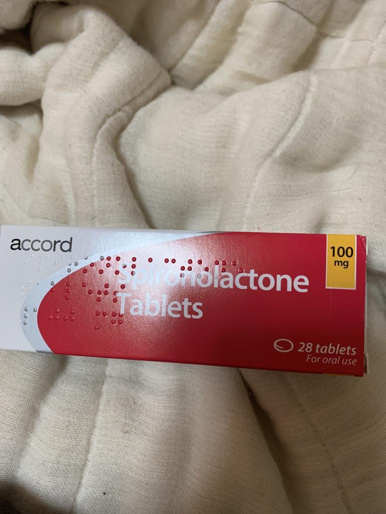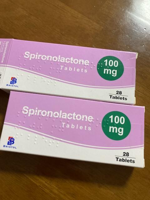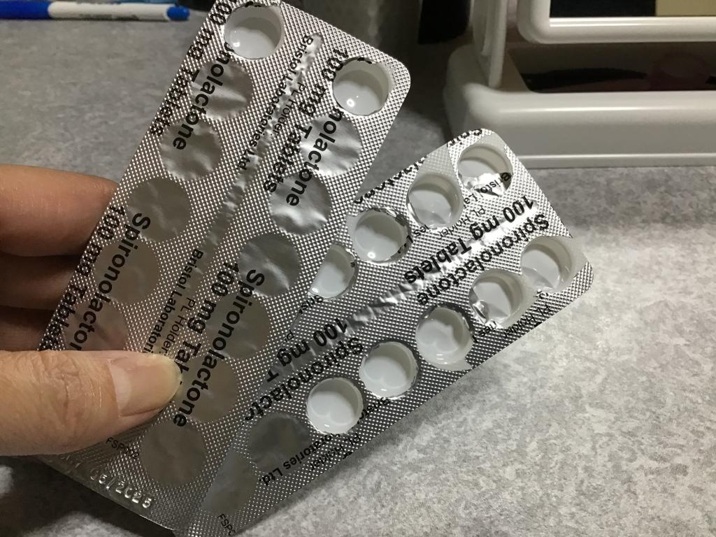 錠剤をピルカッターで半分にし50ミリを一日一回飲んでました。3週間したら全身に強い痒みと関節の痛みを伴う赤くボコボコした蕁麻疹が出ました。(人生初の蕁麻疹で元々アレルギーはありません)すぐに薬を中止し、皮膚科へ。蕁麻疹の飲み薬を処方してもらい2週間でやっと落ち着いてきましたが、まだ蕁麻疹の治療に時間がかかりそうです。最初に試してからまとめ買いすればよかったのですが、いきなりまとめ買いしてしまったので残りのスピロノラクトンはゴミ箱行きとなりました。