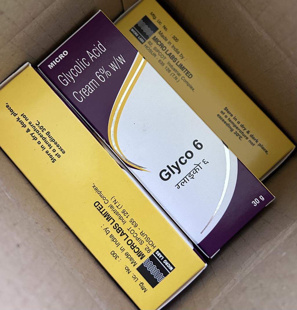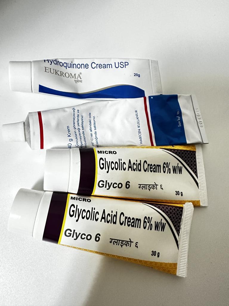 トレチノインの休薬期間に使用しました。朝と夜の洗顔後、ビタミンC誘導体ローション<-化粧水<-グライコ<-ヒトプラセンタジェル<-ハイドロキノンを1ヶ月使用してみましたが、効果はありました。