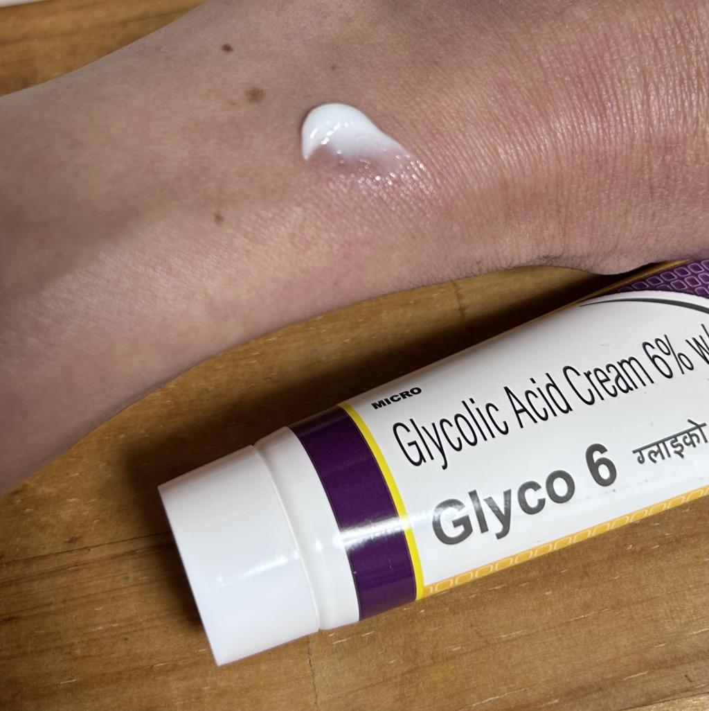 10分後位にグライコ6クリームを特に小皺が気になる個所を中心に薄く塗ってます。