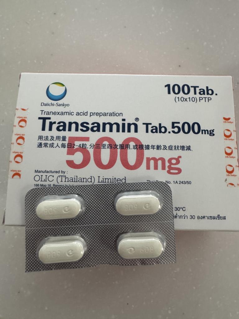 錠剤は少し大きいですが、割れもなく品質は安定しているように思います。扁桃腺を痛めやすいのでトラネキサム酸は常備しておきたいのですが、日本では買いづらいので助かっています。