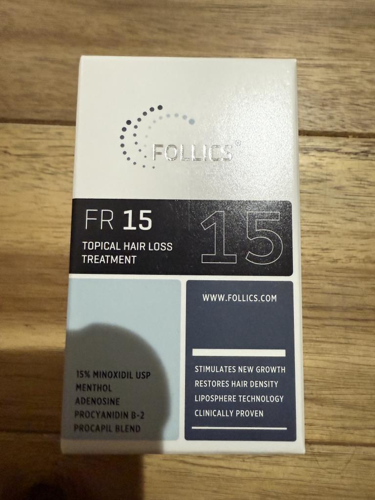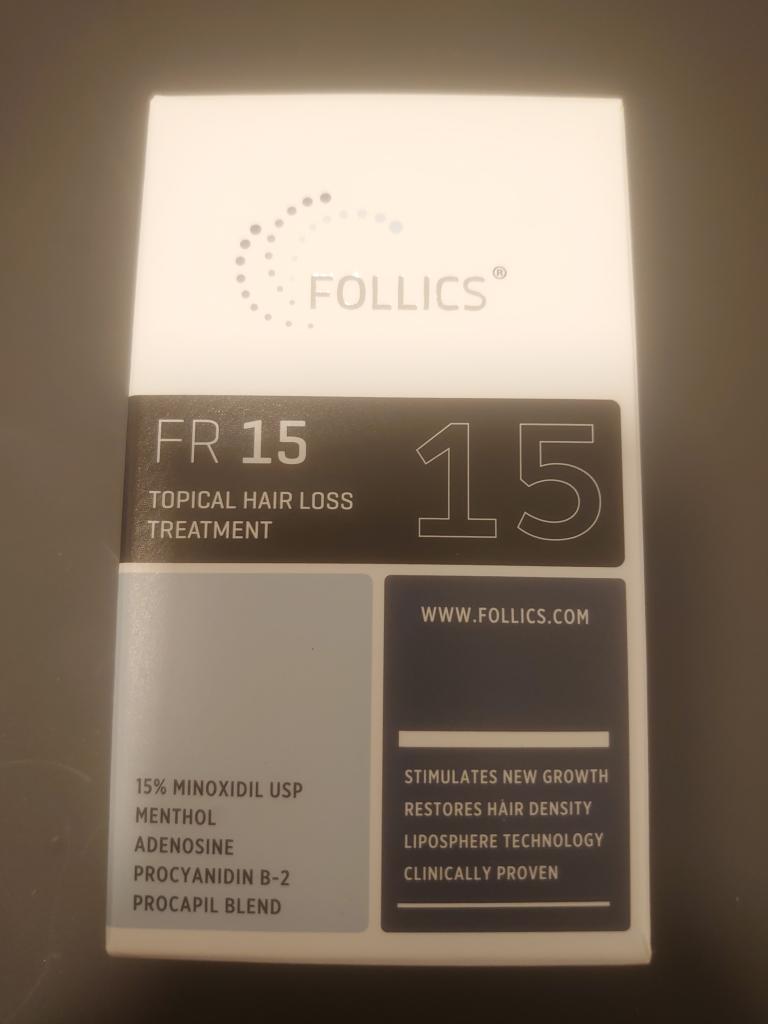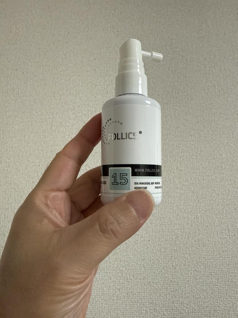 薄毛が少しずつ気になり始めて、色々調べた結果、思い切って FOLLICS FR15 ローション(ミノキシジル15%) を使い始めました。一般的な市販のミノキシジルは5%くらいですが、この商品は15%とかなり高濃度なので、正直ちょっと期待しながらスタートしました。
