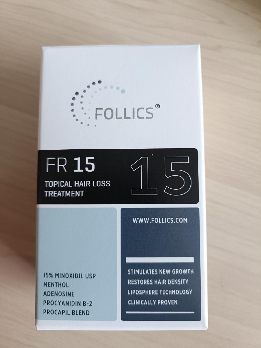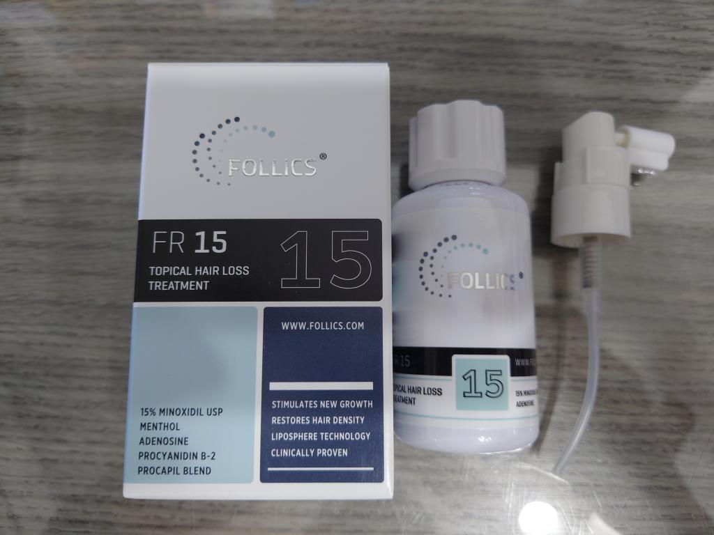 いつもは、FOLLICS]フォリックス FR12 ローション(ミノキシジル12%)を購入していたのですが、今回は、ミノキシジル15%のフォリックス FR15を購入、効き目が少しアップしたように思う。今後もじっくり試してみた。