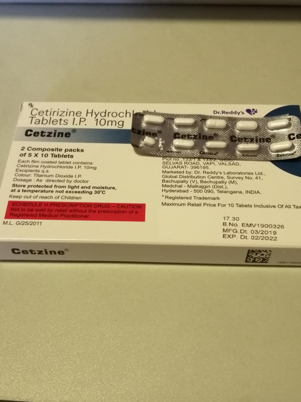 この「Dr.Reddy,s」のセチリジンは蕁麻疹やアレルギーによる痒みの対策として寝る前に1錠飲み続けていたが、最近効かなくなってきた。試しに医者で「サワイ」のセチリジンを処方して貰ったら、これはよく効く。以前の「gsk」のセチリジンはよく効く感じがしたが、オオサカ堂での販売がなくなってしまったので仕方なく「Dr.Reddy,s」になったが、「gsk」のものを復活させて欲しい。