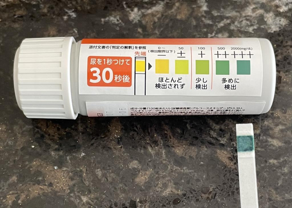 事前に購入していた尿糖検査キットで調べたところ、服用前は正常でしたが、服用を開始した翌朝にはこの検査薬においてMAXである2000ml~の糖が検出されました!