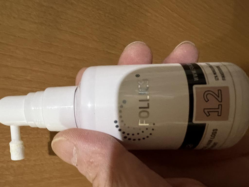 もうずいぶん使用しています。スプレー式なので朝の時間のないときは便利です。ミノキシジルは12%と外より抑え目ですが、効用は十分ではないでしょうか。フィナステリドが含まれているのも購入理由です。