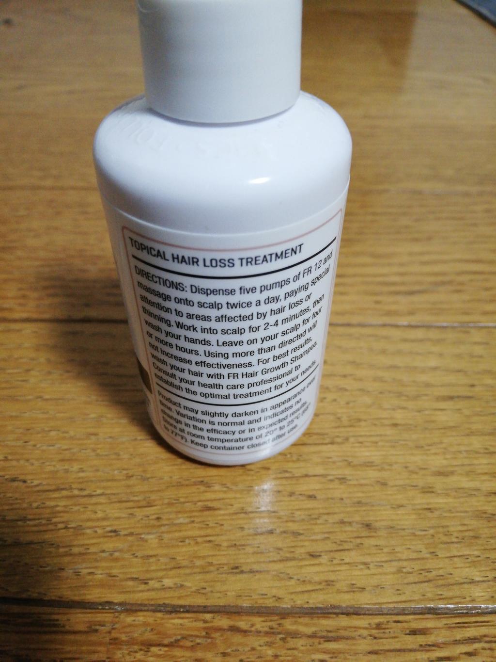 最近はFR10とこのFR12を併用使用していますが、濃度より1日の使用回数が多いほうが効果的な感じがしてきました。今しばらくはこのパターンで継続するつもりです。