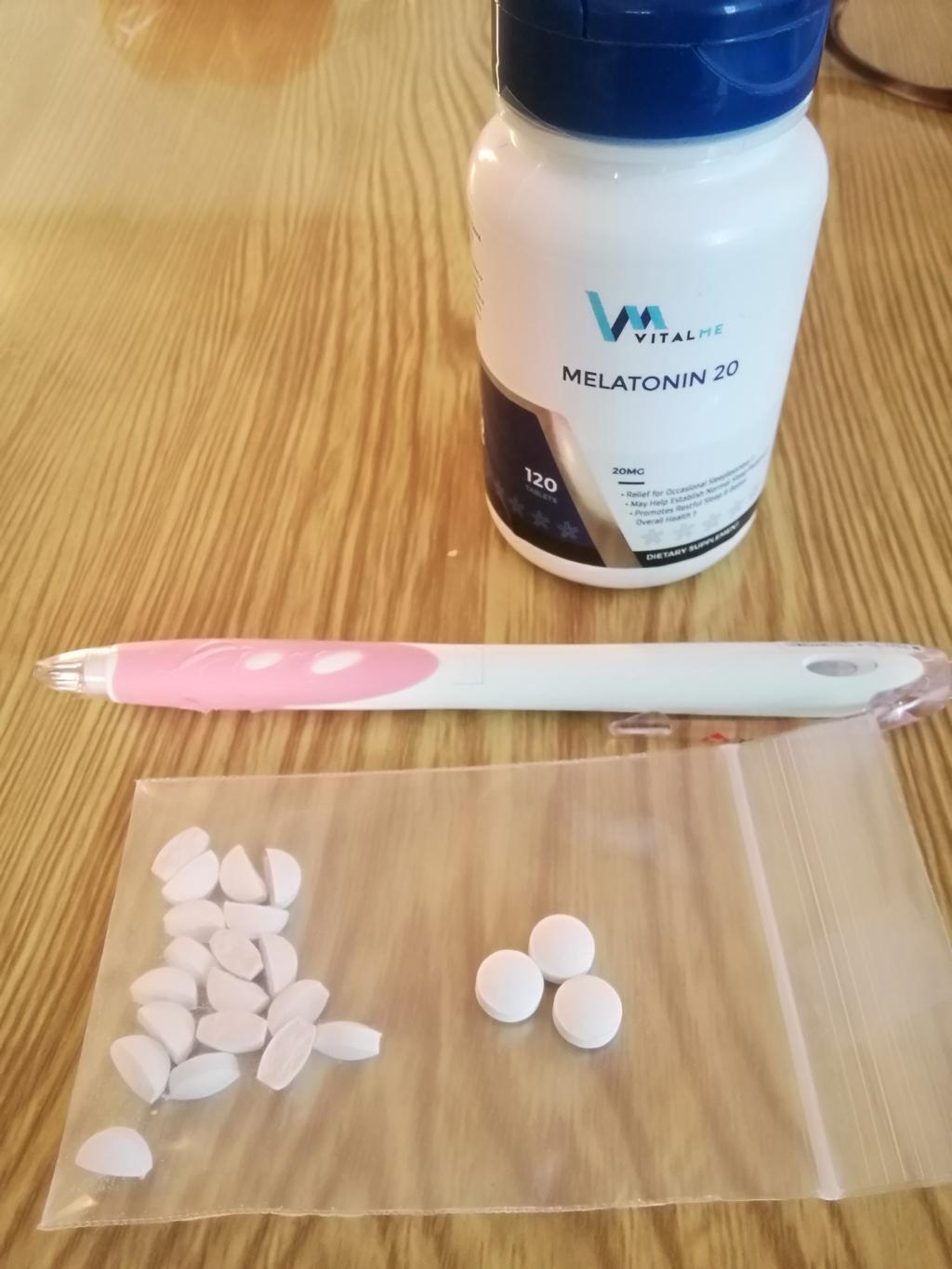 コストパフォーマンスが高い。いくつかの研究に基づけば概日リズムの調整目的では20mgといったかなりの高用量は必要ないのだが(なんなら1mgでも多い)、メラトニン代謝産物のAMKが長期記憶の形成を促進するという報告があるので摂取している。