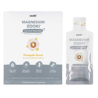 Zookiによる、マグネシウムサプリメント(パイナップルグアバ味)です。1日分のマグネシウムを効率的に補給できる製品です。パイナップルとグアバのエキスを配合し、美味しく摂取できることが特徴です。マグネシウムは、筋肉の機能やエネルギーレベルをサポートし、体内の代謝を後押しします。このサプリメントは、リポソーム技術により吸収率が高く、体内での利用効率が最大限に高められています。